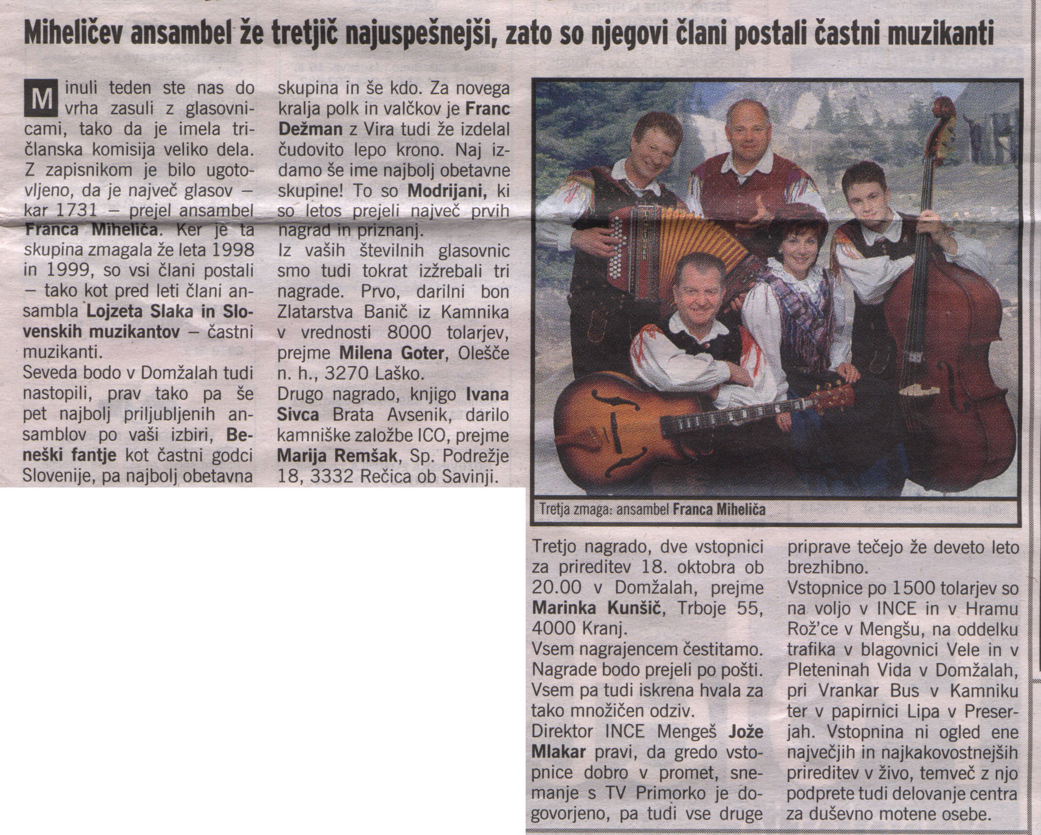 ČLANKI O ANSAMBLU IN USPEHIH